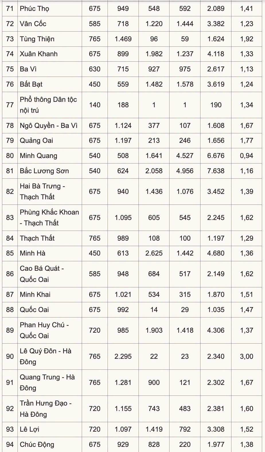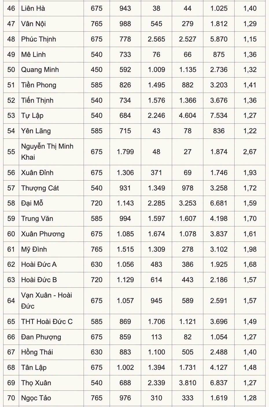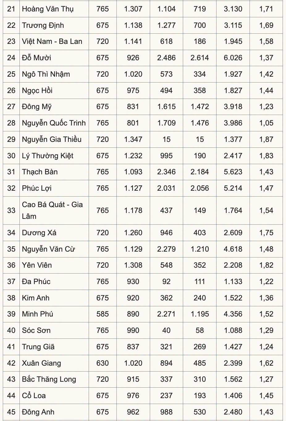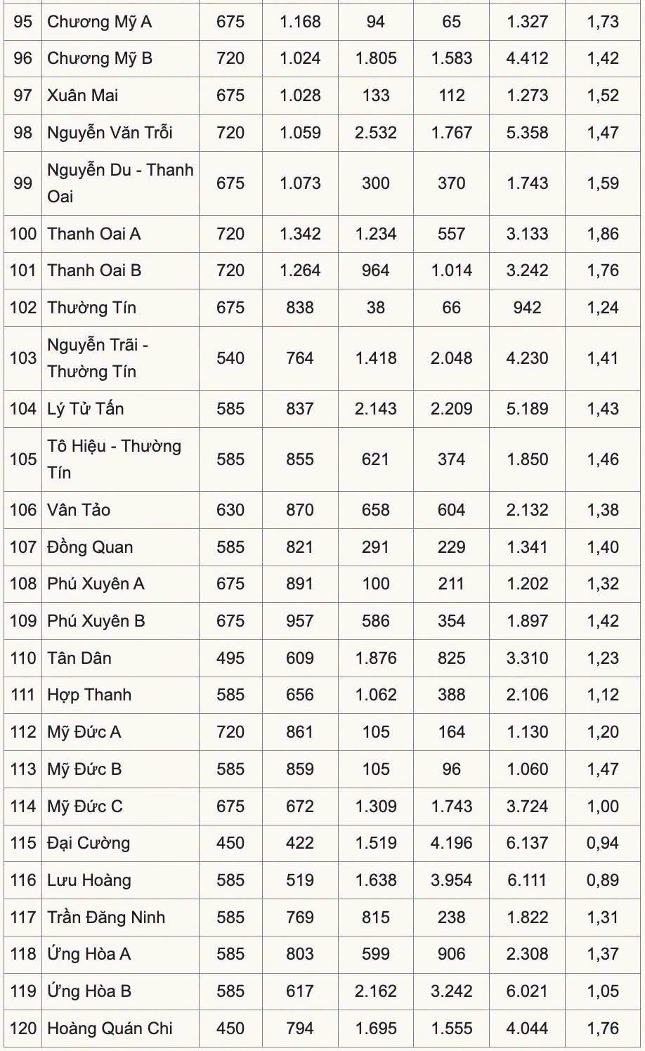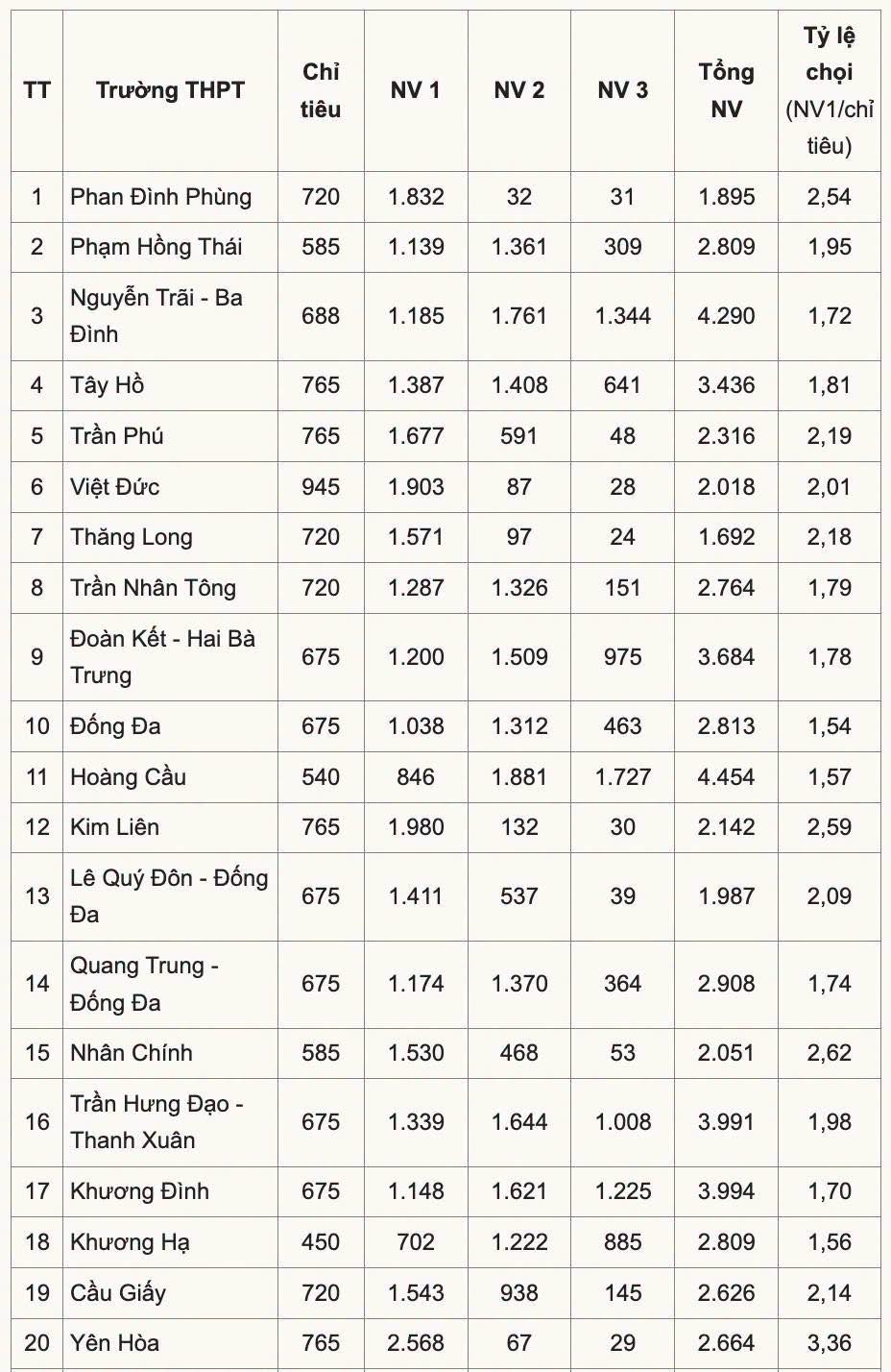 Thống kê số nguyện vọng, tỷ lệ chọi của 120 trường THPT công lập không chuyên (con số mang tính tham khảo, tính toán theo dữ liệu trên hệ thống của Sở Giáo dục và Đào tạo từ 23h30 đến 23h50 ngày 17/4)
