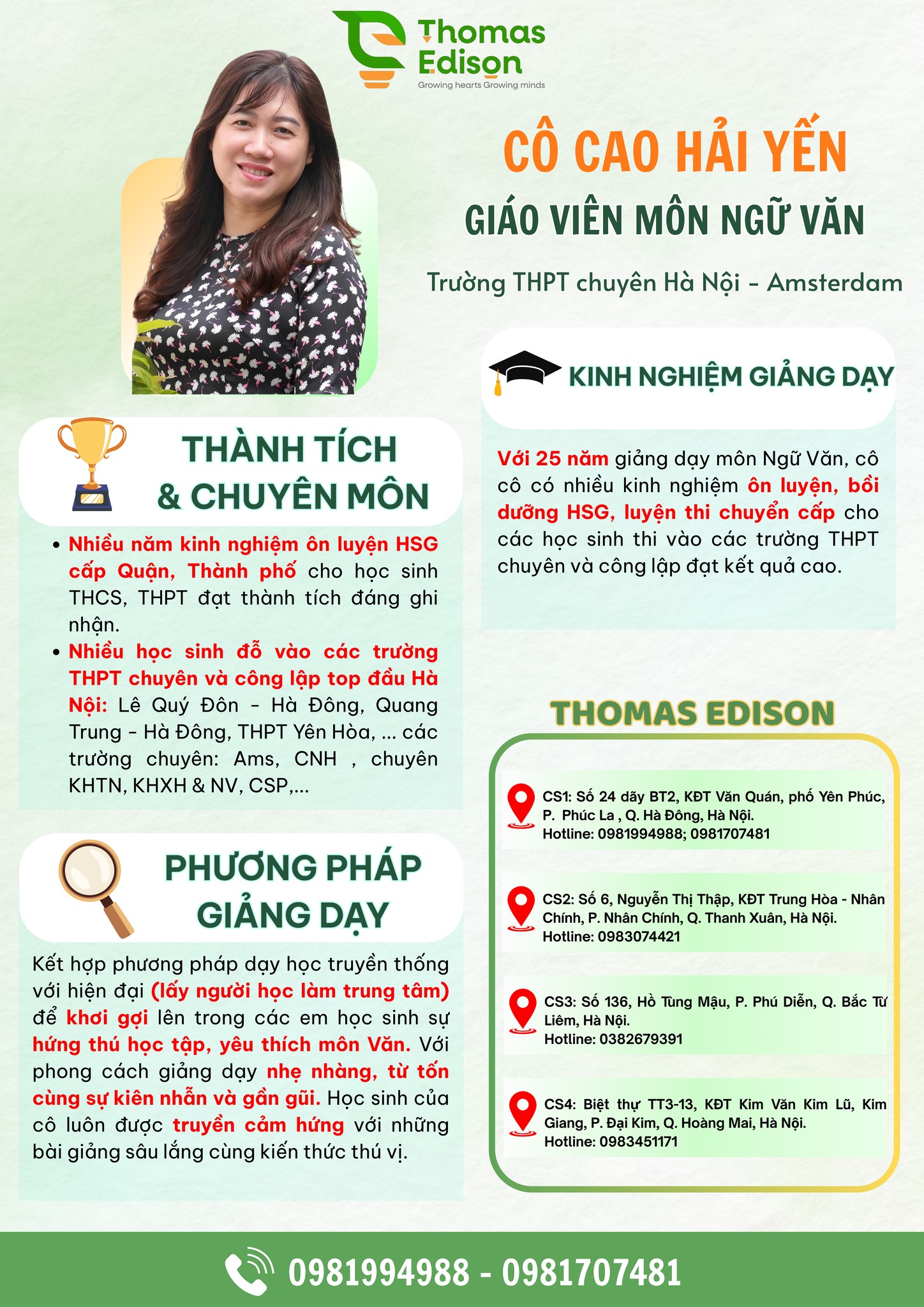 Không cần những lời hoa mỹ, chỉ cần một tiết học với cô Cao Hải Yến – các con sẽ hiểu: Ngữ Văn không phải là môn học để “thuộc lòng”, mà là hành trình để lắng nghe, thấu cảm và viết nên tiếng nói của chính mình.