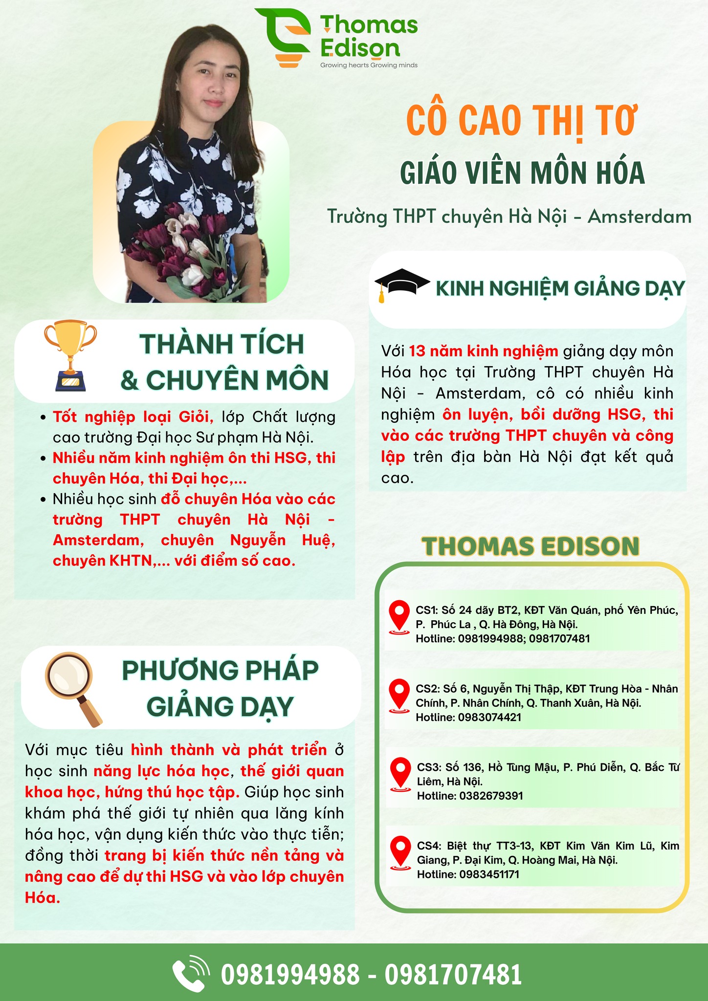 Tham gia lớp ôn chuyên Hóa lớp 8, 9, 10 cùng cô Tơ – để bắt đầu hành trình chinh phục môn học này một cách tự tin, vững vàng nhé.