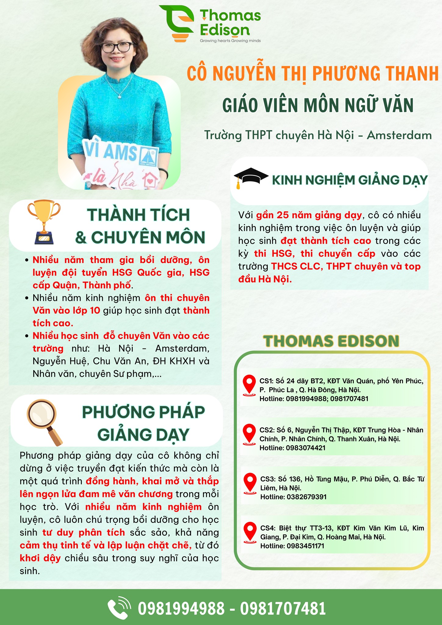 Với sự tỉ mỉ, tâm huyết và truyền cảm hứng, cô Phương Thanh không chỉ giúp học sinh đạt kết quả cao, mà còn định hình phong cách tư duy và bản lĩnh của một học sinh yêu – và học tốt – môn Văn chuyên.
