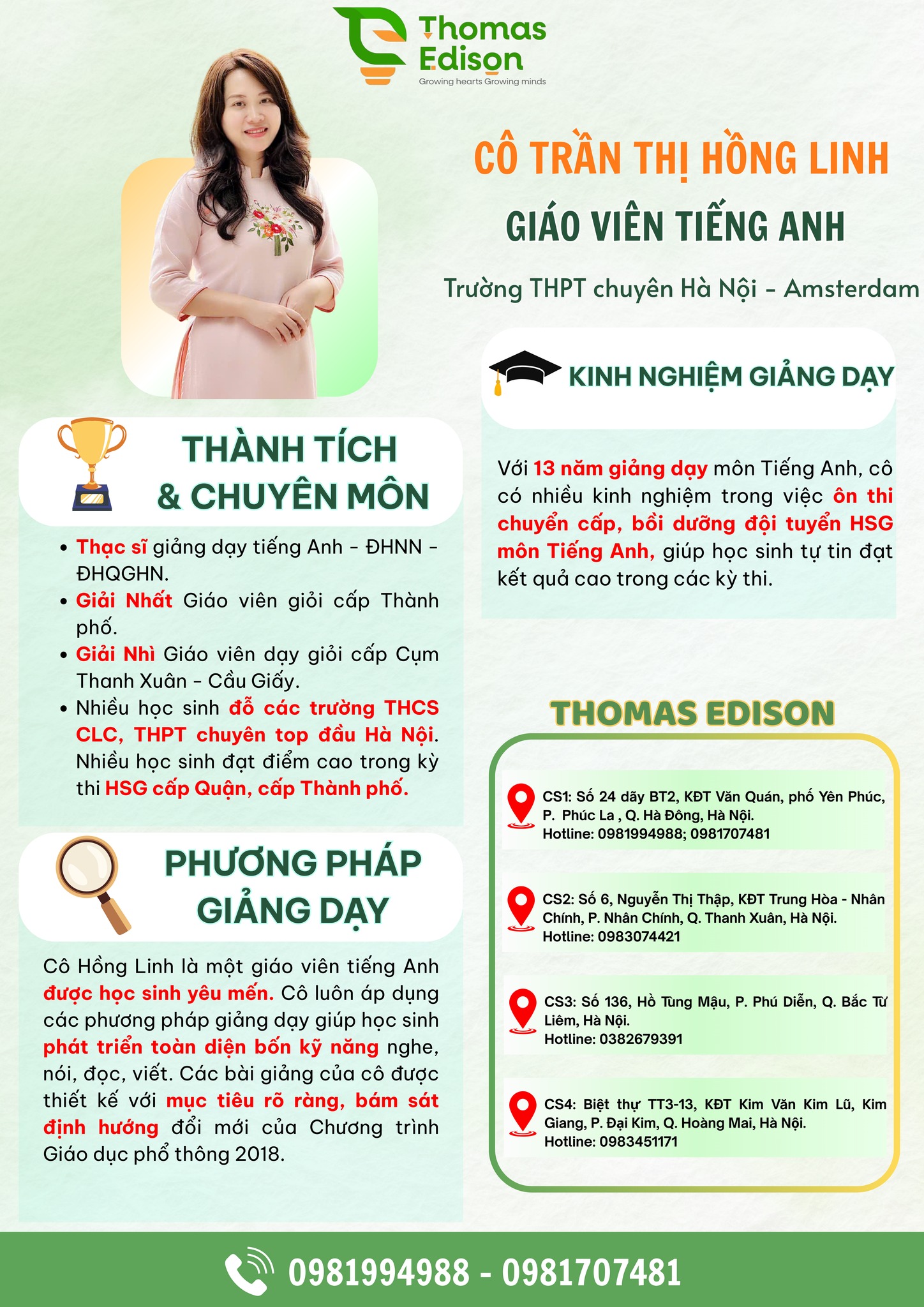 Năm nay, cô Hồng Linh sẽ trực tiếp đồng hành cùng các em trong lớp Anh 8, 9 điều kiện, để các con có thêm hành trang tự tin chinh phục kỳ thi chuyển cấp. Đăng ký tham gia ngay thôi nào!!!!