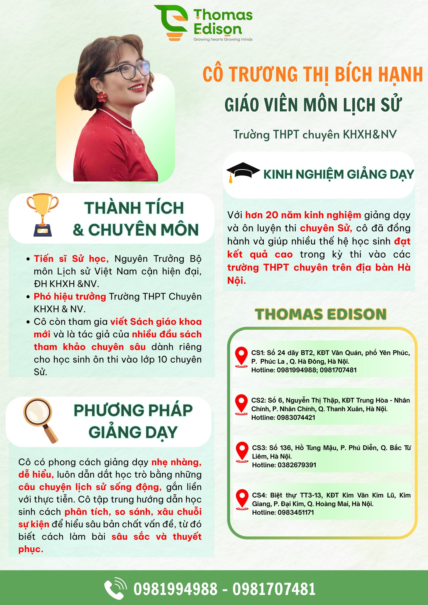 🌱 Cô Hạnh luôn tin rằng mỗi học sinh đều có tiềm năng đặc biệt, chỉ chờ được nhìn thấy và dẫn dắt đúng cách. Chính vì thế, với cô, việc dạy Lịch sử không chỉ là truyền kiến thức, mà là gieo vào các con niềm say mê, lòng tò mò và tình yêu với quá khứ - để các con hiểu rằng những câu chuyện lịch sử không xa vời mà luôn gắn liền với mỗi chúng ta.
